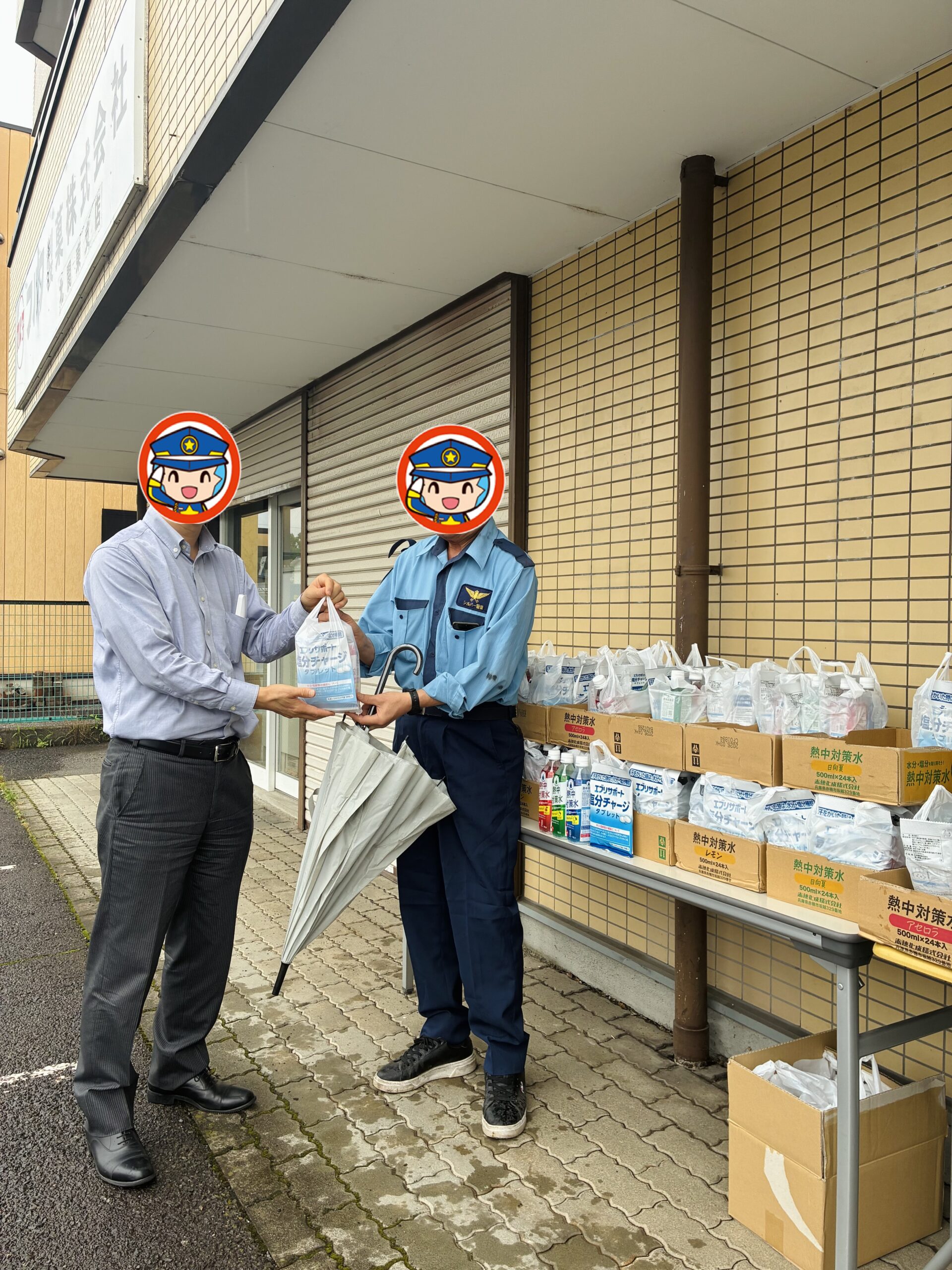 飲み物以外にも塩飴・日よけなどを用意し配布しました! 体温を下げる空調服の用意...
